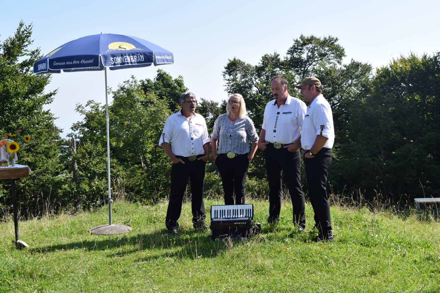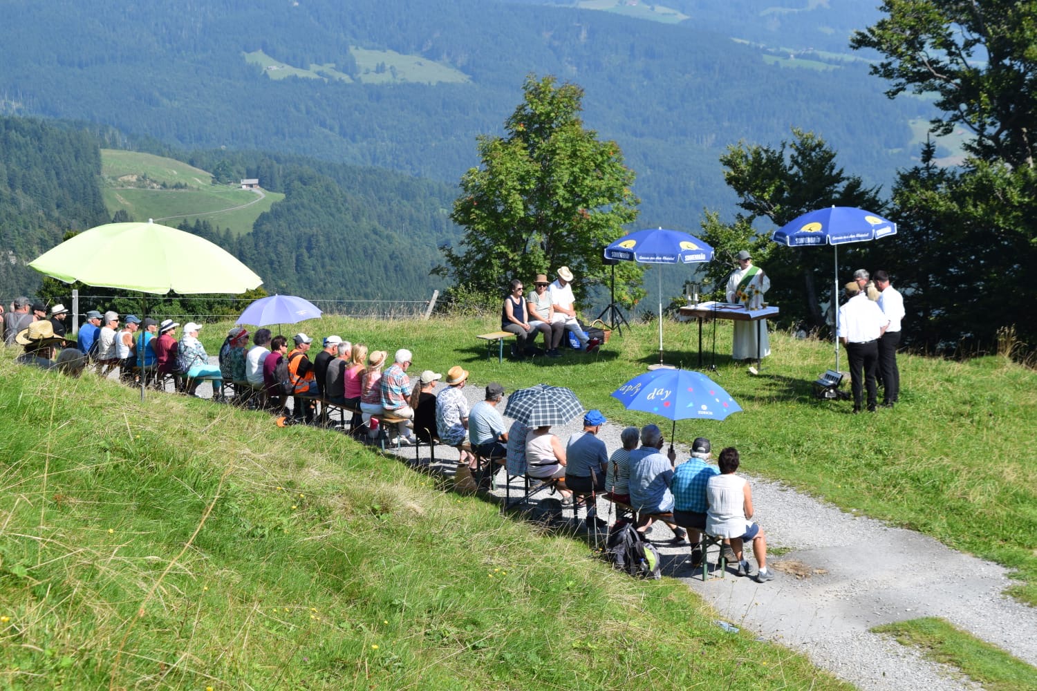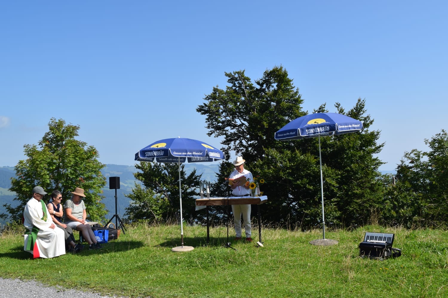 Am letzten Sonntag, dem 10. August, traf sich die Ortsgemeinde Montlingen zum traditionellen Alpgottesdienst auf dem Montlinger Schwamm. Bei strahlendem Sonnenschein und richtig warmem Sommerwetter genossen viele Besucher die Feier im Freien – genau wie jedes Jahr am letzten Sonntag der Sommerferien, wenn das Wetter mitspielt. Für die musikalische Stimmung sorgten die Holzbuurabuaba Kobelwald, dazu gab’s tolle Alphornklänge und die lebhaften Schellenschüttler. Ein rundum schöner Anlass in bester Gesellschaft!