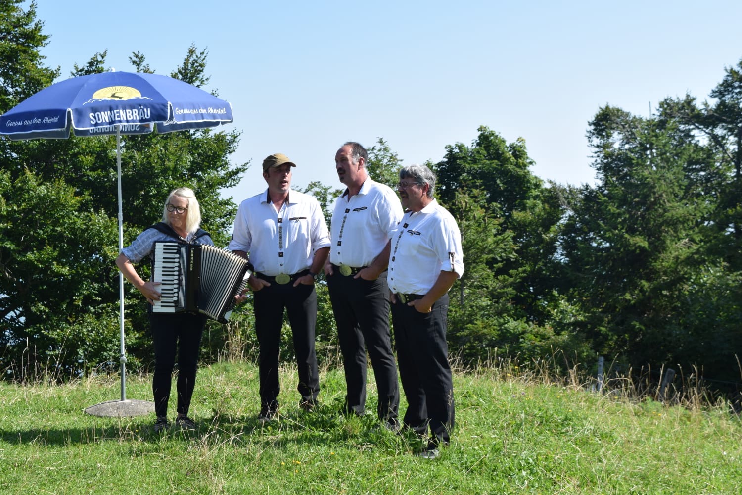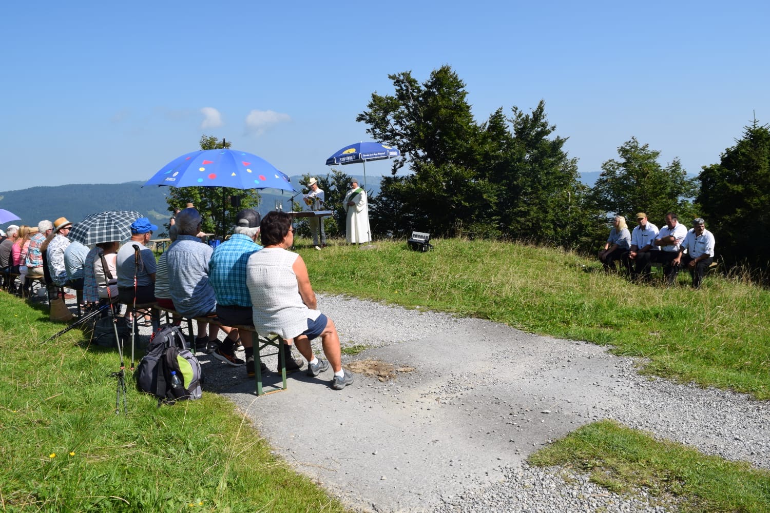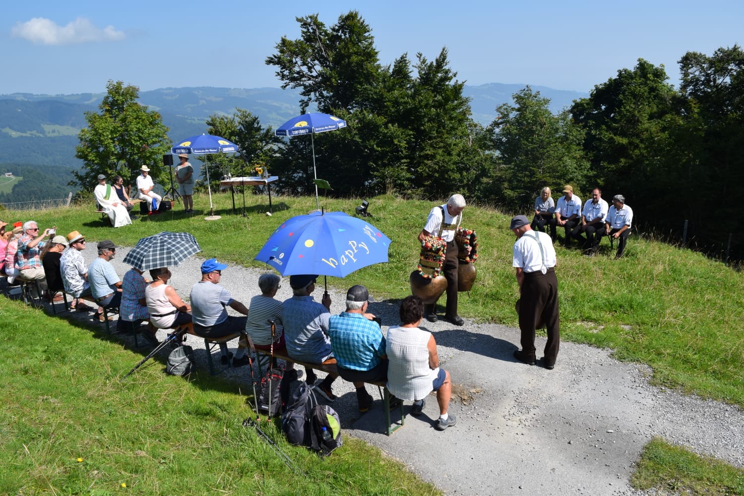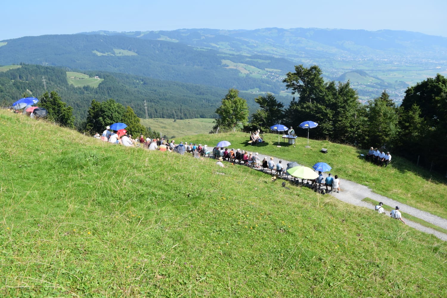 Am letzten Sonntag, dem 10. August, traf sich die Ortsgemeinde Montlingen zum traditionellen Alpgottesdienst auf dem Montlinger Schwamm. Bei strahlendem Sonnenschein und richtig warmem Sommerwetter genossen viele Besucher die Feier im Freien – genau wie jedes Jahr am letzten Sonntag der Sommerferien, wenn das Wetter mitspielt. Für die musikalische Stimmung sorgten die Holzbuurabuaba Kobelwald, dazu gab’s tolle Alphornklänge und die lebhaften Schellenschüttler. Ein rundum schöner Anlass in bester Gesellschaft!
